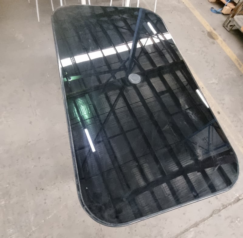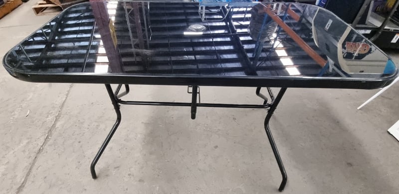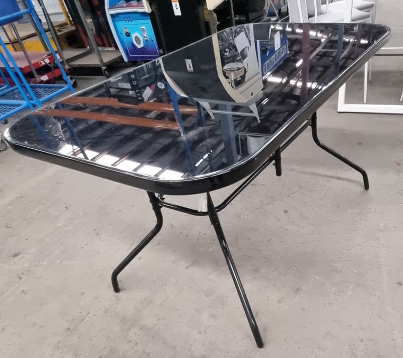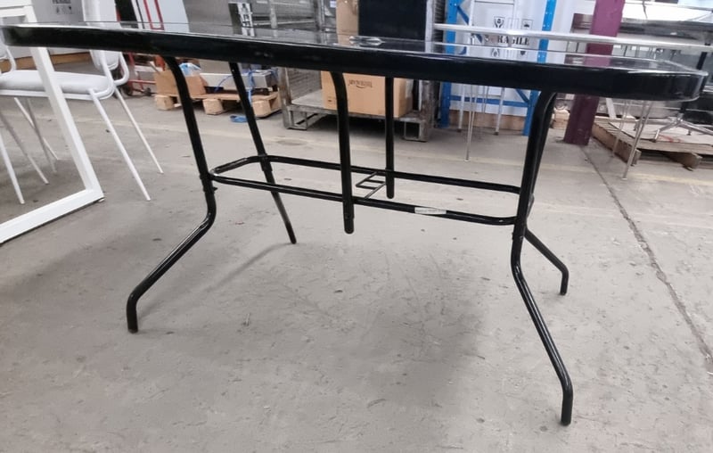 Outdoor dining table, Black, Metal frame, Glass top