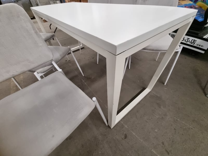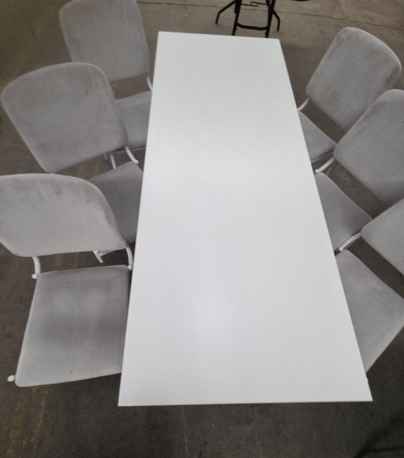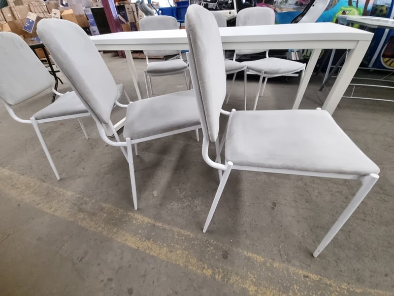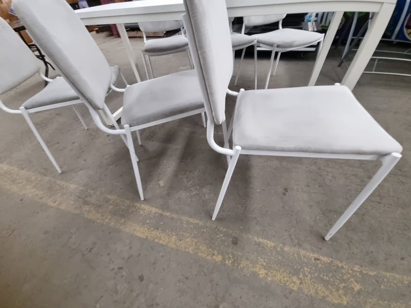 7 Piece Table and Chairs, White, Steel Frame, Chairs, Grey, Upholstered, Steel Frame, Qty x 6