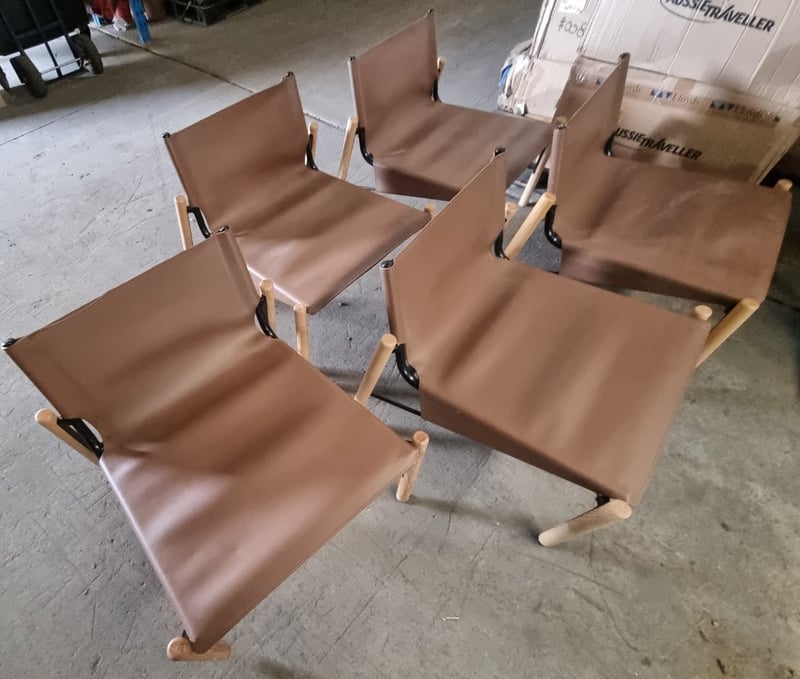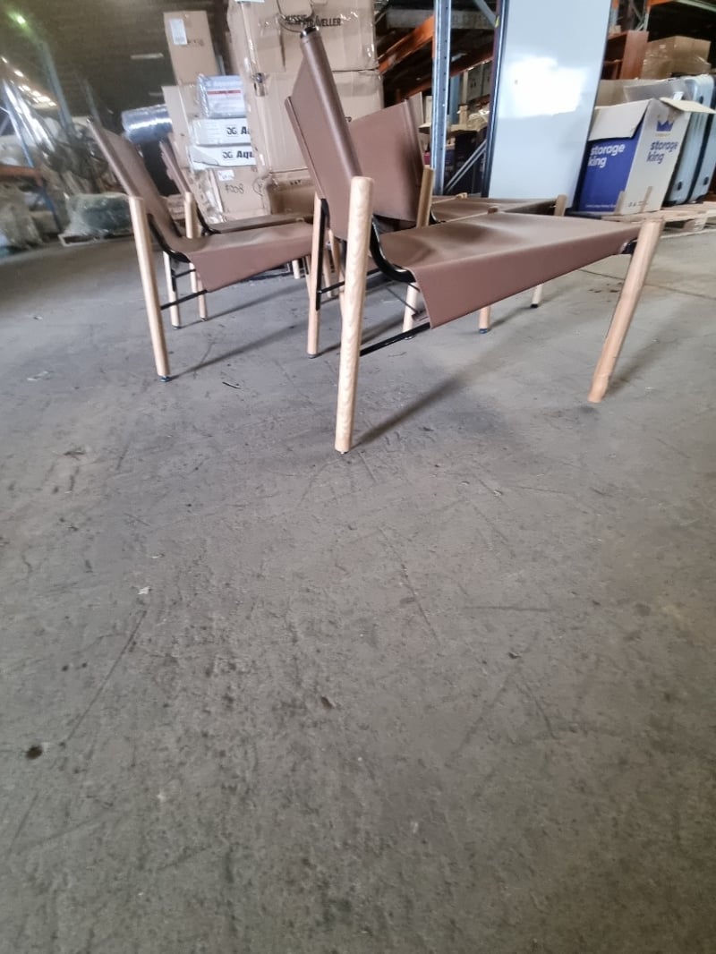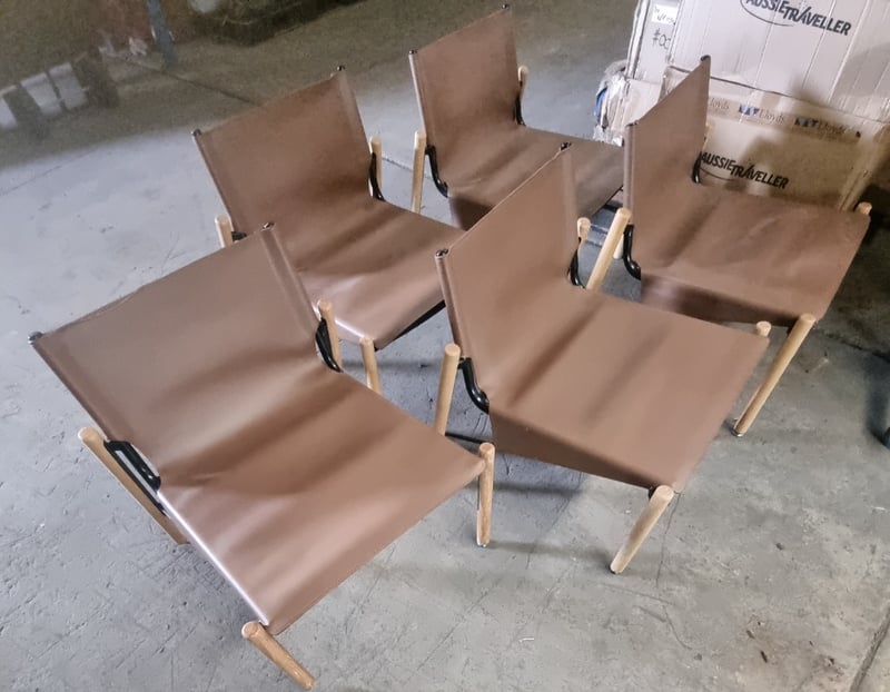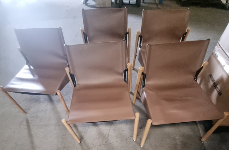 Outdoor Chairs, Brown, Leather style, Timber legs, Steel frame, Qty x 5