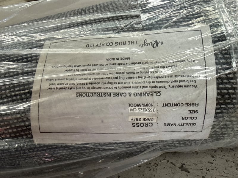 RRP:$400, Rug, The Rug Co, Cross, Colour: Dark Grey, 100% Wool, Size:155 x 225 cms