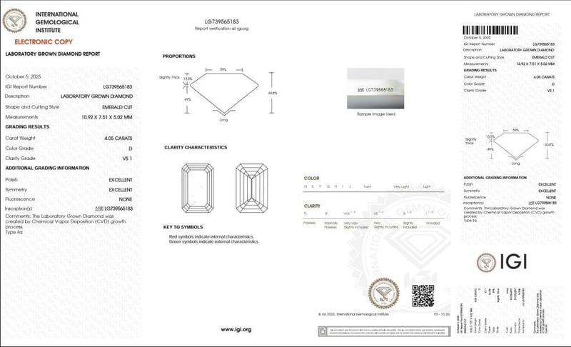 This Extraordinary Emerald Lab-Grown Diamond Is The Epitome Of Timeless Elegance And Modern Brilliance. With A Perfect D Color Grade, Ensuring It Is Completely Colorless And Exceptionally Rare, And Vs1 Clarity Grade, Meaning Inclusions Are Minimal And Only Visible Under Magnification, Ensuring The Diamond'S Brilliance. The Excellent Cut Maximizes The Stone'S Sparkle, While The Excellent Polish And Excellent Symmetry Enhance Its Overall Beauty. Certified By Igi (Report No. Lg739565183).