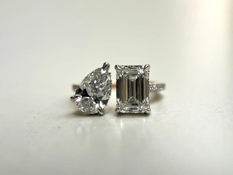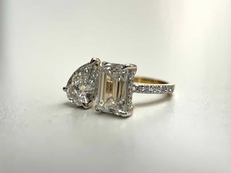 18K YELLOW GOLD 2.62 CT LAB DIAMOND TOI ET MOI RING