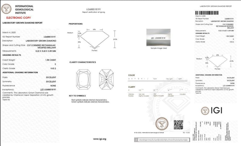 This Extraordinary Radiant Lab-Grown Diamond Is The Epitome Of Timeless Elegance And Modern Brilliance. With A Perfect E Color Grade, Ensuring It Is Completely Colorless And Exceptionally Rare, And Vvs2 Clarity Grade, Meaning Inclusions Are Minimal And Only Visible Under Magnification, Ensuring The Diamond'S Brilliance. The Excellent Cut Maximizes The Stone'S Sparkle, While The Excellent Polish And Excellent Symmetry Enhance Its Overall Beauty. Certified By Igi (Report No. Lg688518191).
