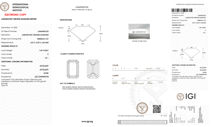 This Extraordinary Emerald Lab-Grown Diamond Is The Epitome Of Timeless Elegance And Modern Brilliance. With A Perfect E Color Grade, Ensuring It Is Completely Colorless And Exceptionally Rare, And Vs1 Clarity Grade, Meaning Inclusions Are Minimal And Only Visible Under Magnification, Ensuring The Diamond'S Brilliance. The Excellent Cut Maximizes The Stone'S Sparkle, While The Excellent Polish And Excellent Symmetry Enhance Its Overall Beauty. Certified By Igi (Report No. Lg669436724).