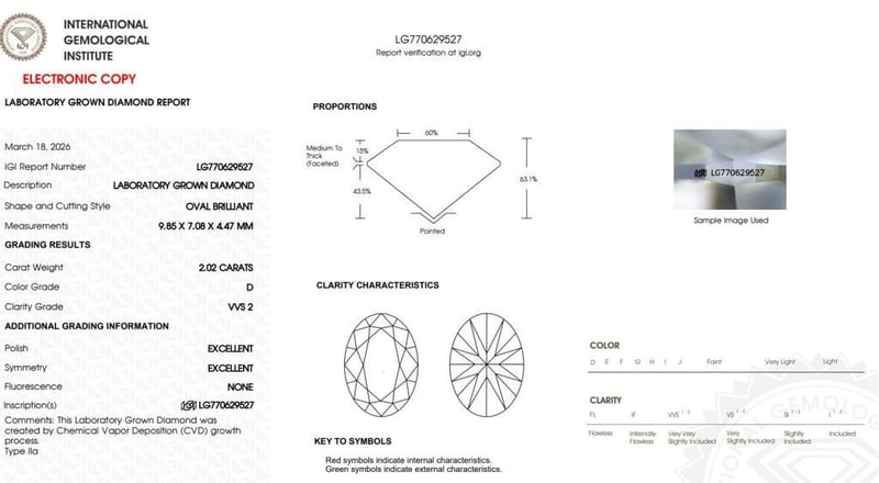Please note that while all lab grown diamonds listed include certification, the report number or identification may vary upon arrival. This is due to standard manufacturing and batching processes. However, the diamond’s specifications — including carat, color, cut, and clarity — will match or may even exceed those advertised.