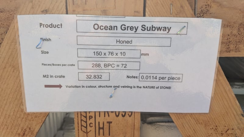 Ocean Frey Subway, Honed, 150 x 76 x 10, 32.832m2
