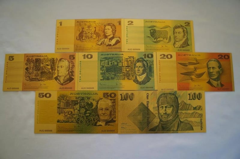AUSTRALIA SET OF 7 SOUVENIR DOLLAR COLLECTION 24K GOLD PLATED SLEEVED NOTES COA-AUSTRALIAN BANK NOTE SET LIMITED EDITION RARE BANKNOTE ALBUM-GOLD PLATED These Amazing Limited Edition Notes Are Plated With Real 99.99% Pure Gold-Plated Banknote Of Australia, Giving Them A Stunning And Luxurious Look.Each Note Features Intricate Detailing, Making Them Highly Sought After By Collectors.The Protective Folder Ensures That Your Gold Bank Notes Are Safe From Damage, Fading, And Other Potential Harm.It Also Makes It Easy To Store And Display Your Collection.These Notes Are A Must-Have For Any Collector Looking To Add A Touch Of Luxury To Their Collection.Act Fast, As These Limited Edition Notes Are Sure To Sell Out Quickly.Add One To Your Collection Today! Product Features & BenefitsLimited Edition Gold Bank NotesPlated With Real Gold For A Luxurious LookFeatures Designs Showcasing The History And Culture Of AustraliaComes In A Protective Folder To Keep The Notes SafeEasy To Store And DisplayThese Gold Bank Notes Are A Valuable Addition To Any Collection Comes With A Golden Certificate Of AuthenticityA Great Way To Add A Touch Of Luxury To Your Collection.Kindly Notes This Is Not Real Gold...But Gold Plated Only 311195+16