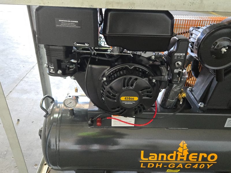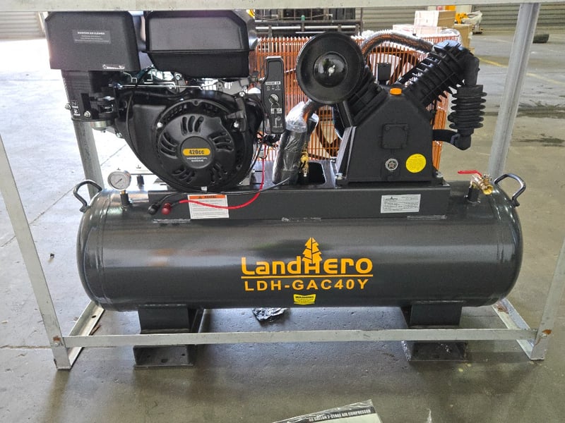 FACTORY DIRECT ** Unused ATSpower, 40 Gallon 2-Stage Truck Mounted Air Compressor - LDH -GAC40YPaladin 40 Gallon 2-Stage Truck Mounted Air CompressorSpecifications:• Tank capacity: 40 gal• Max. pump running pressure: 175 PSI at 80% duty cycle• Air delivery:14.5 CFM @ 175 PSI16.5 CFM @ 135 PSI18.7 CFM @ 90 PSI20.6 CFM @ 40 PSI• 1-½"NPT ball valve• 3 AMP battery charging circuit (battery not included)•Powder-coated tank finish•Engine: Briggs&Stratton 10HP,4-stroke,OHV,gasoline•Displacement: 306 cc•Regulated charging system•Low oil shut down•Start type: recoil/electricSize Approx: 1372*440*950Weight Approx: 164 kgPlease note: minor scuffs and marks may be evident For more information Contact King Cheung on 0477987576 or [email protected] *** PLEASE NOTE Collections must occur within 7 days of Auction Ending*** Note: OEM images and VIDEOS shown are for illustration purposes only, and used as a guide only, inspections highly recommended. Buyer is responsible for pre-inspection of the item. Auctioneer IS NOT responsible for differences, defects, missing parts or pieces or transit damage (noted or otherwise)**