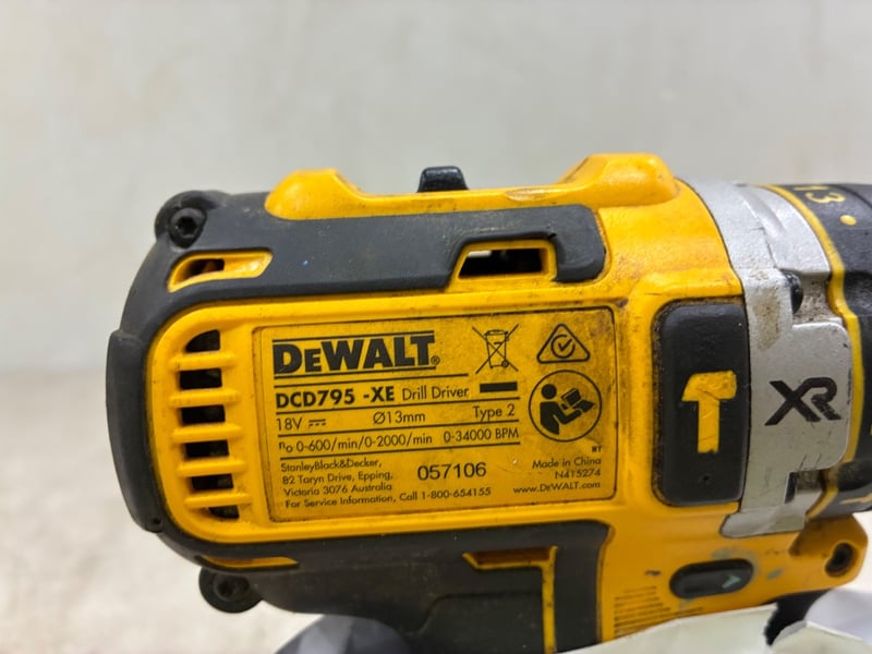 Power tool, yellow drill, DCD795.Note: Unknown working condition.