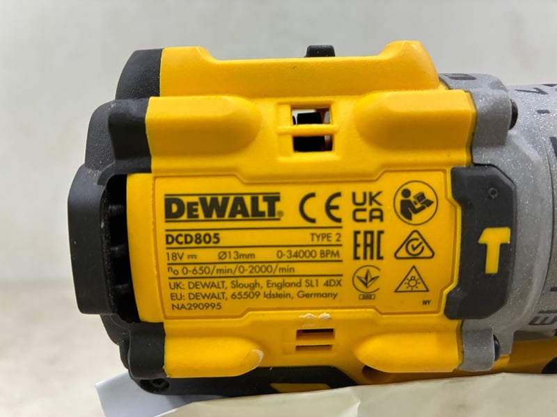 Power tool, yellow drill, DCD805.Note: unknown working condition.