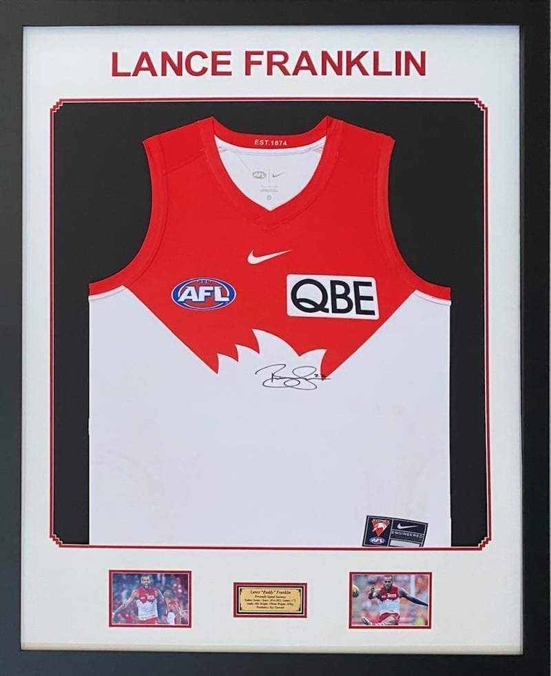 LANCE "BUDDY" FRANKLIN PERSONALLY SIGNED SYDNEY SWANS GUERNSEY