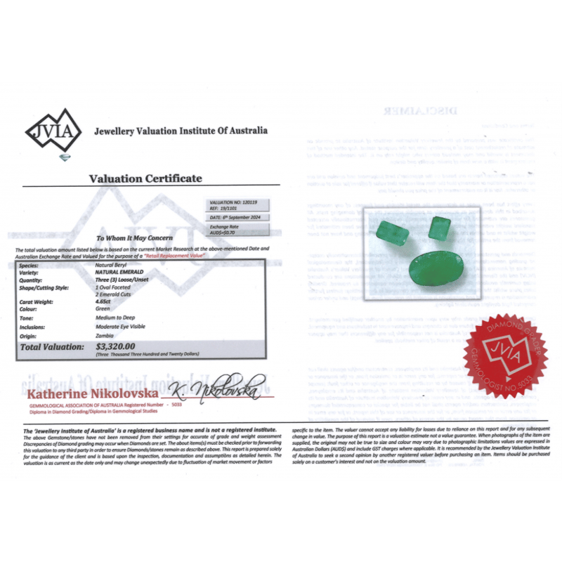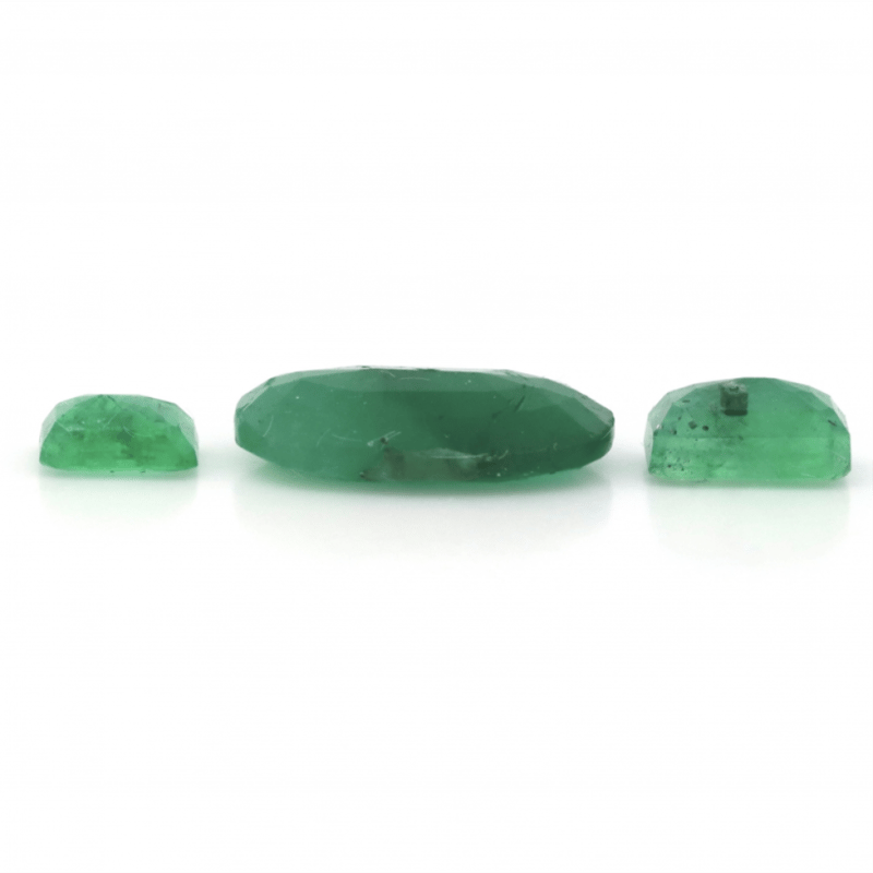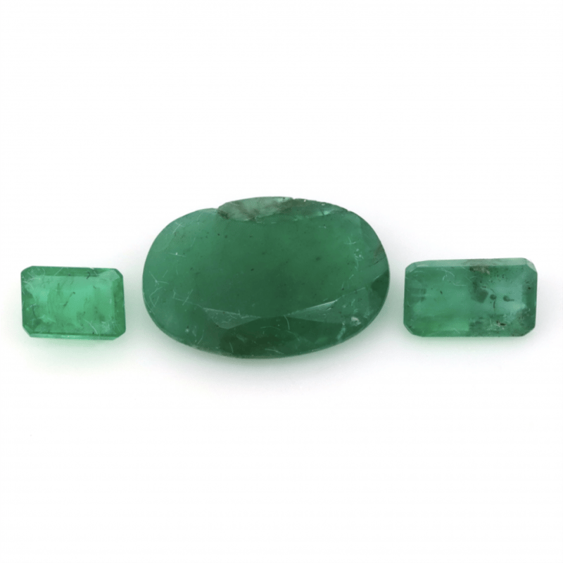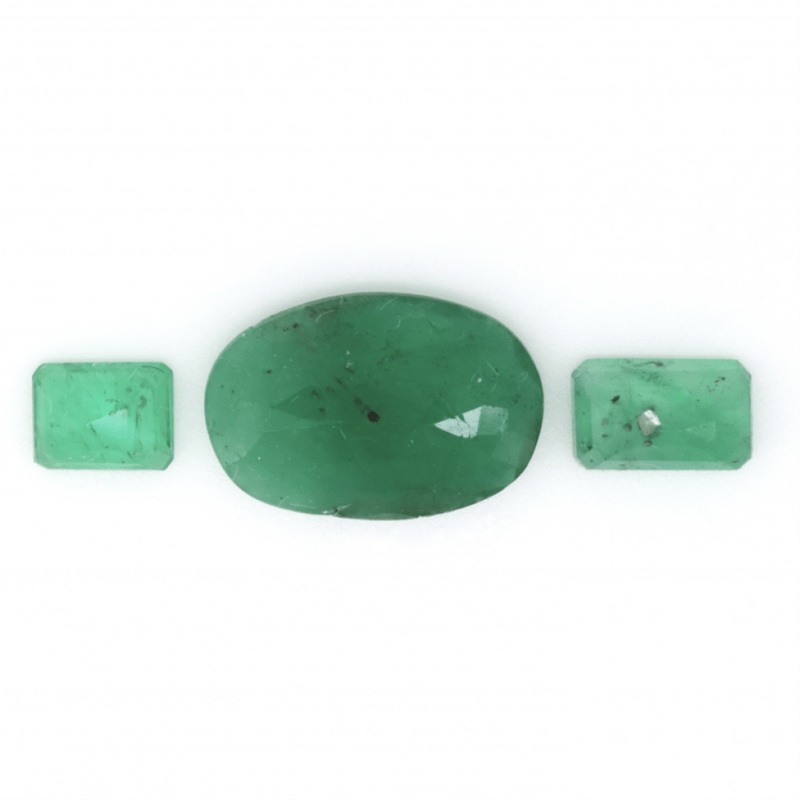 One Oval Faceted Cut And 2 Emerald Cut, Medium-Medium Deep Green, Moderate Eye Visible Inclusions, Zambian Origin, Loose, Unset.