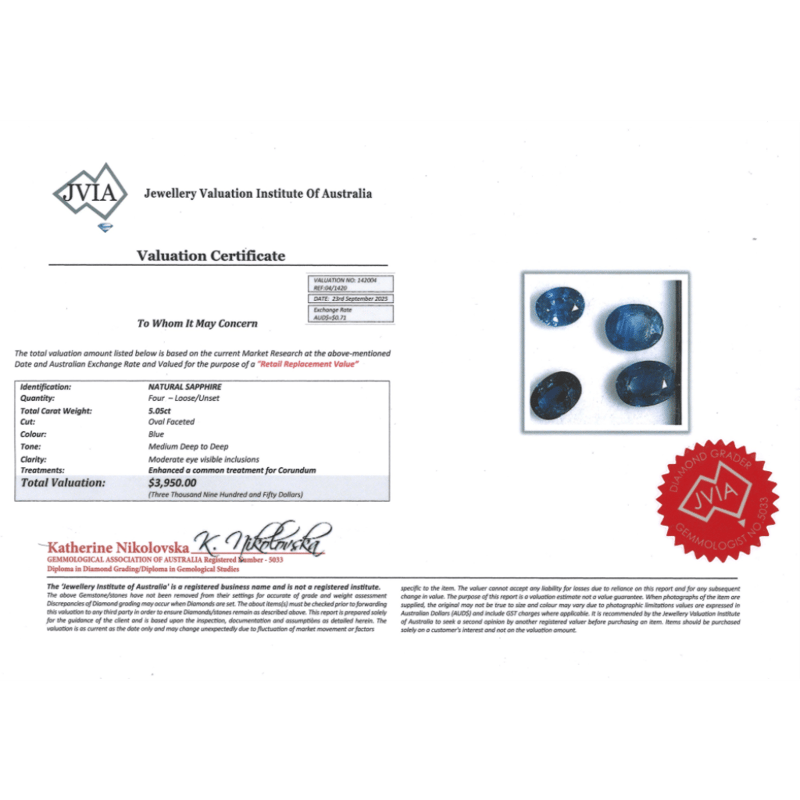 5.05CT TSW X 4, BLUE SAPPHIRES