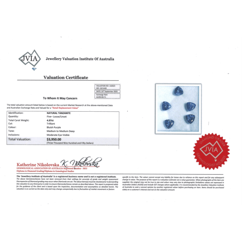 4.97CT TSW X 5, NATURAL TANZANITES