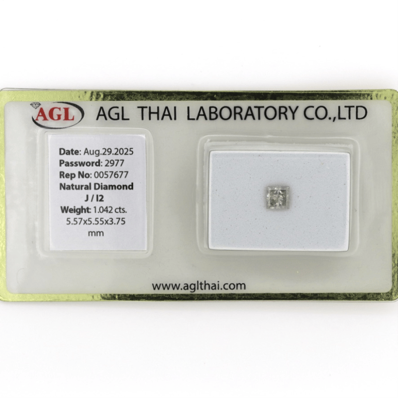 1.042CT CERTIFIED, NATURAL DIAMOND Princess Cut, J Colour, I2 Clarity, Loose, Unset. Stone Comes Sealed With Agl Report: 0057677. Valuations Provided by an Independent Third-Party Professional Not Directly Associated With Lloyds Auctions at AUD $$10,500.00This valuation has been conducted by an independent third-party professional. The valuation amount is an assessment by the issuing valuer and does not reflect the auction value of the item. Any inquiries regarding the valuation should be directed to the issuing valuer (refer to contact details on the certificate), as Lloyds Auctions has no affiliation or influence over the valuation, the valuer, or the stated amount. Condition: Good - Refer Images 0645987+2112