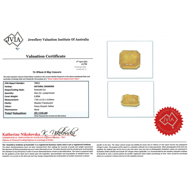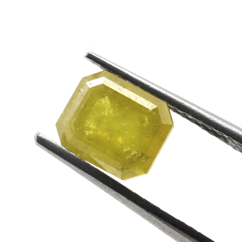 Emerald Cut, Fancy Greyish-Yellow, Translucent, Loose, Unset.