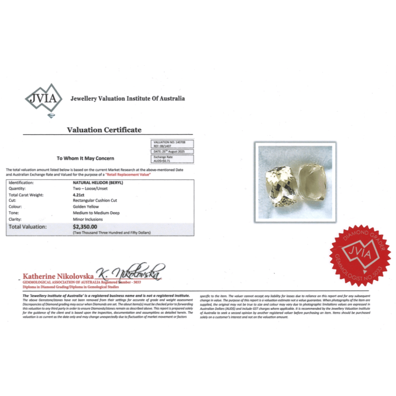 4.21CT TSW X 2, NATURAL BERYL HELIODOR