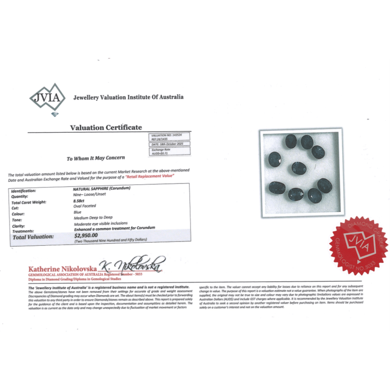 8.58CT TSW X 9, NATURAL BLUE SAPPHIRES
