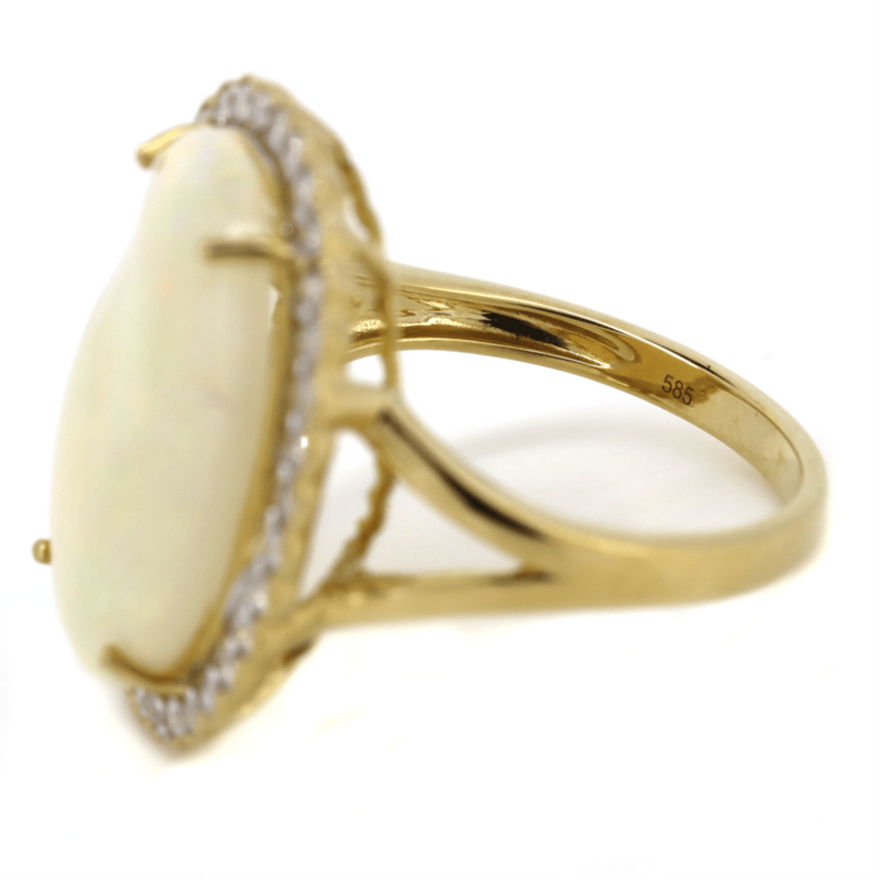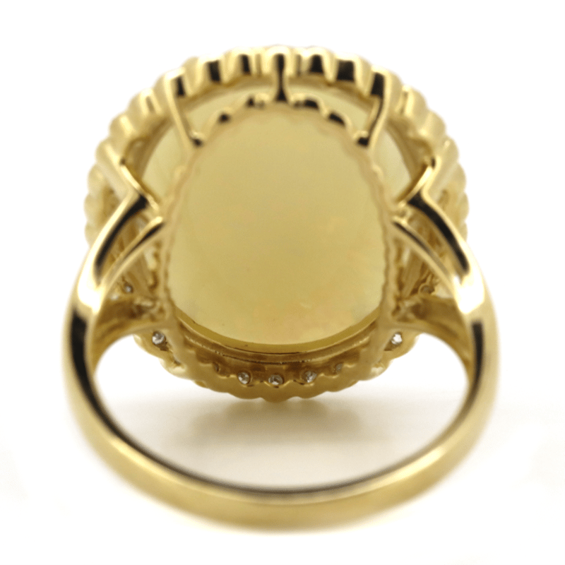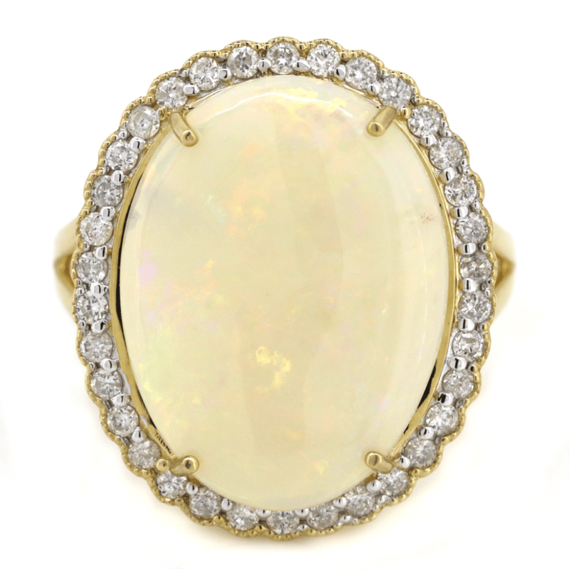 14K YELLOW GOLD, 5.76CT AUSTRALIAN ANDAMOOKA OPAL AND DIAMOND, HALO RING.