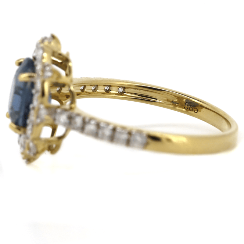 14K YELLOW GOLD, 1.80CT BLUE CEYLON SAPPHIRE AND DIAMOND, DRESS RING.
