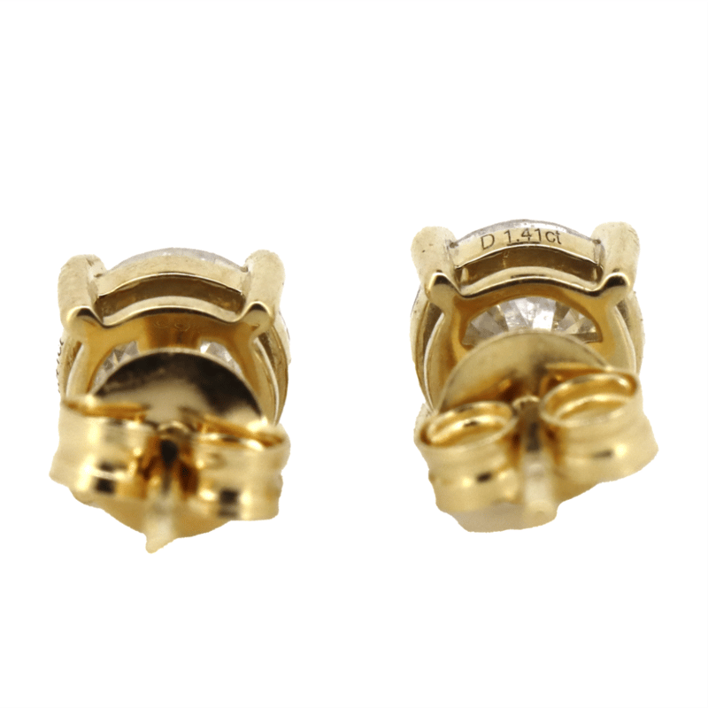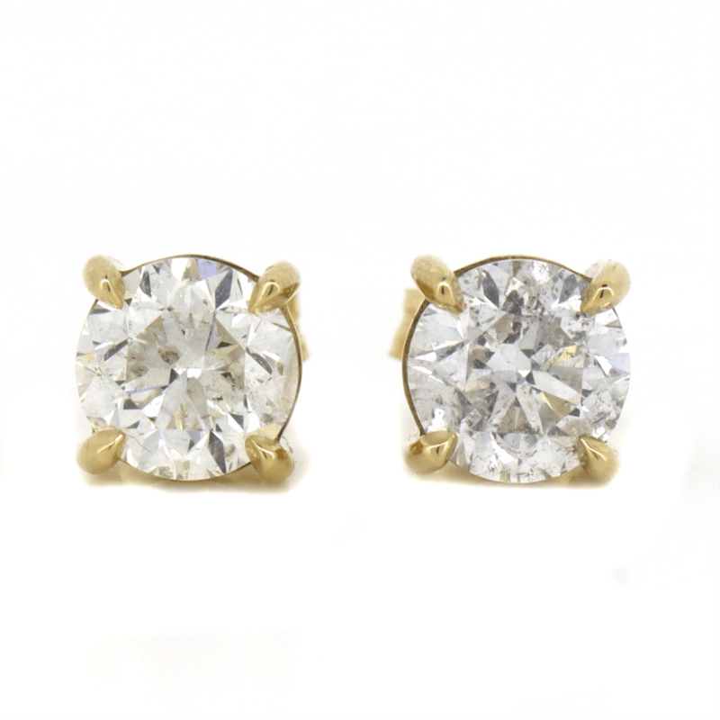 The Earrings Feature, 2 Round, Diamonds (1.41Ct Tdw, G-H Colour, S12-I1 Clarity), 4 Claw Set. The Earrings Have Post Backs, With 14K Yellow Gold Backs.