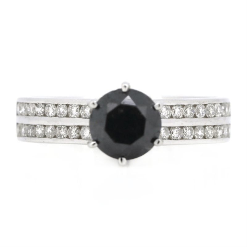 14K WHITE GOLD, BLACK DIAMOND AND DIAMOND, DOUBLE ROW BAND RING. The Centre Features, One Round Brilliant Cut, Black, Diamond (1.25Ct, Opaque), 6 Claw Set. Decorating The Band Are, 32 Round Brilliant Cut, Diamonds (0.38Ct Tdw, G-H Colour, Si1-Si2 Clarity), Channel Set. Ring Size M. Valuations Provided by an Independent Third-Party Professional Not Directly Associated With Lloyds Auctions at AUD $$11,000.00This valuation has been conducted by an independent third-party professional. The valuation amount is an assessment by the issuing valuer and does not reflect the auction value of the item. Any inquiries regarding the valuation should be directed to the issuing valuer (refer to contact details on the certificate), as Lloyds Auctions has no affiliation or influence over the valuation, the valuer, or the stated amount. Condition: Good - Refer Images 0645988+134