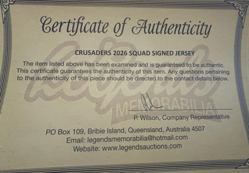 Canterbury Crusaders 2026 Squad Signed Jersey. The Jersey Is Size L. The Item Is Accompanied By A Certificate Of Authenticity.