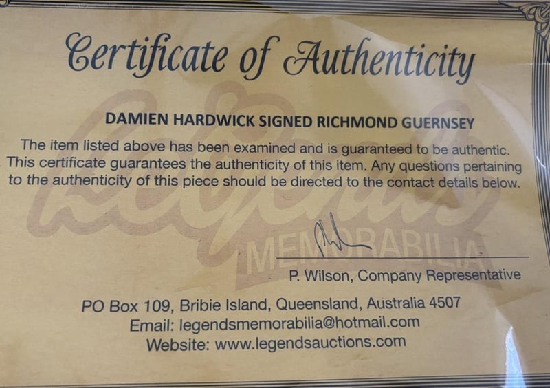 DAMIEN HARDWICK SIGNED RICHMOND GUERNSEY