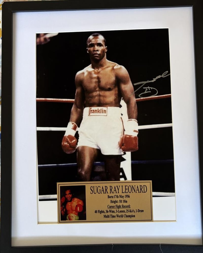 SUGAR RAY LEONARD SIGNED & FRAMED PHOTO