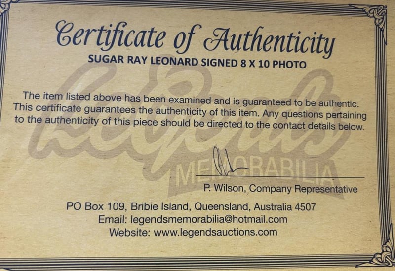 Sugar Ray Leonard Personally Signed And Framed (With Plaque) Photo. Measuring 14 X 11, This Is Ready To Hang. The Item Is Accompanied By A Certificate Of Authenticity.
