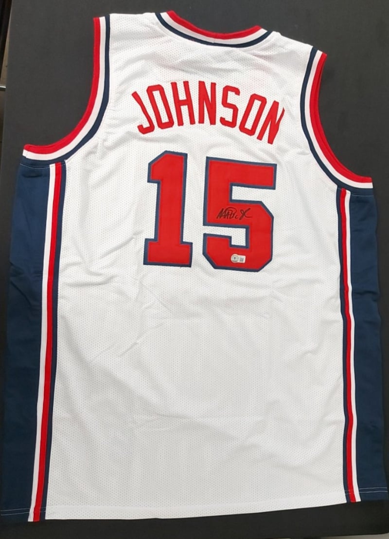 MAGIC JOHNSON USA SIGNED WHITE JERSEYSize: Xl488526+38