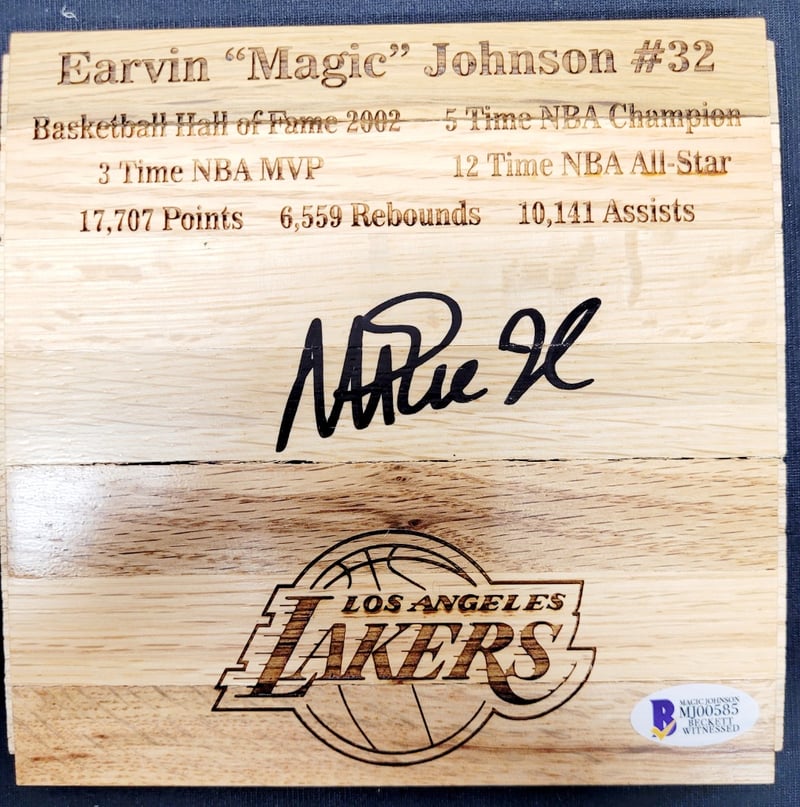 EARVIN " MAGIC " JOHNSON #32 SIGNED FLOORBOARD PIECE CELEBRATING BASKETBALL HALL OF FAME 2002488526+103