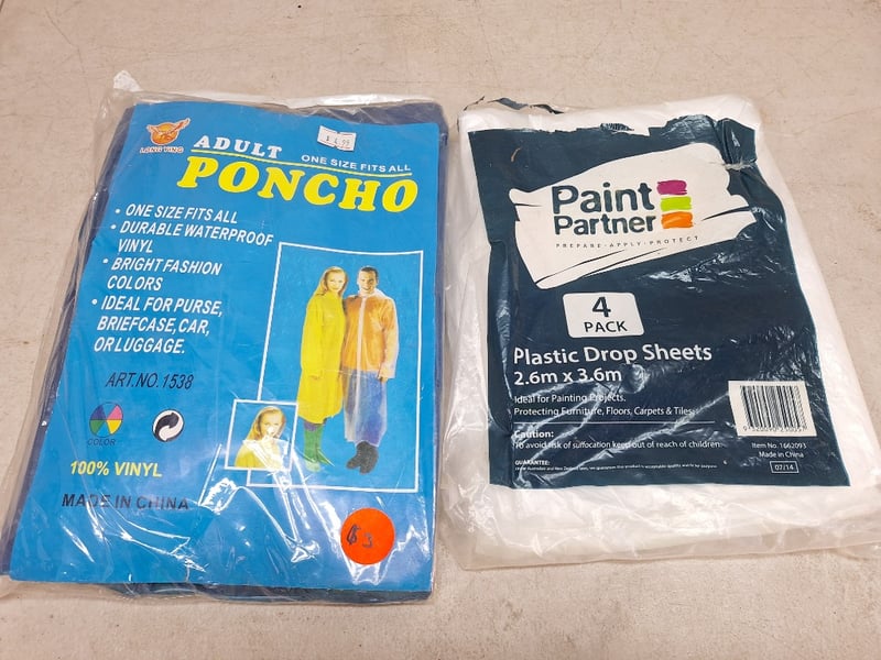 Assorted Household Items Includes Ponchos, Gloves, Wheels & More SOLD AS LOT