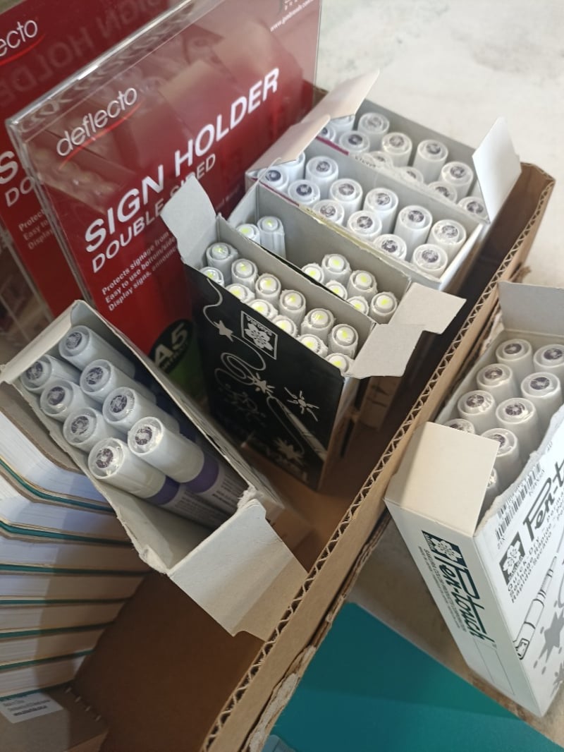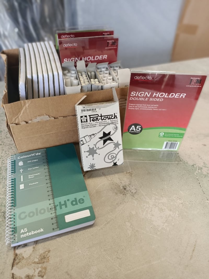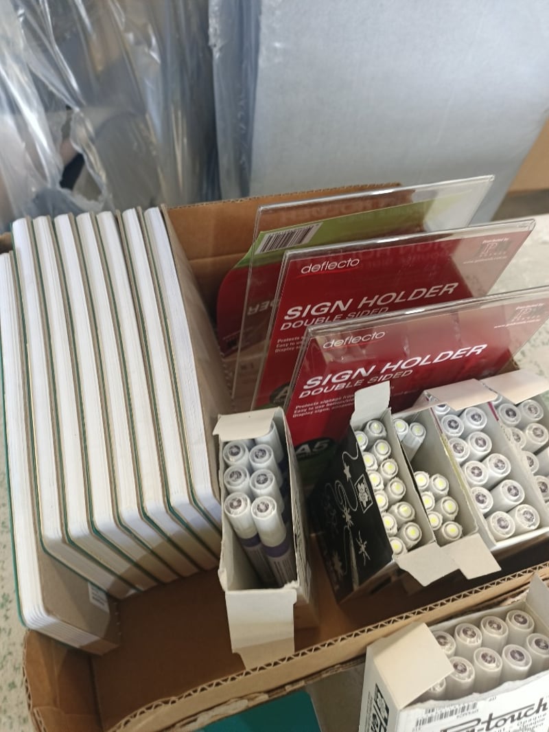 Stationary Lot Including Pen Touch Markers, Sign Holders & Notebooks