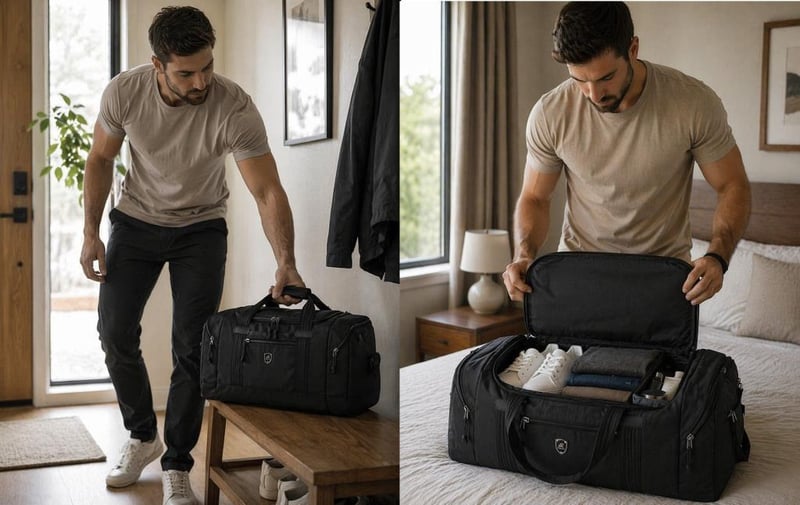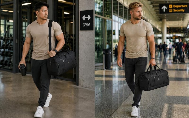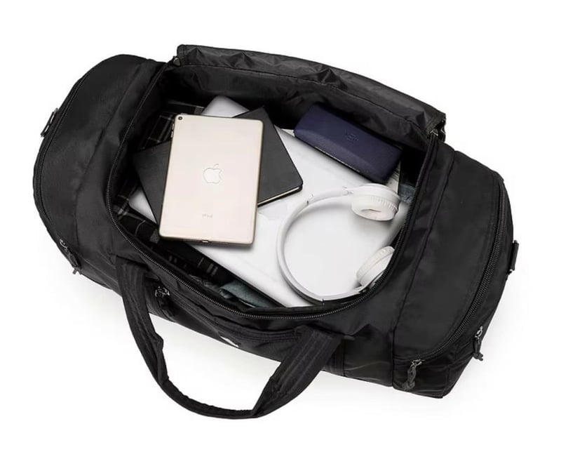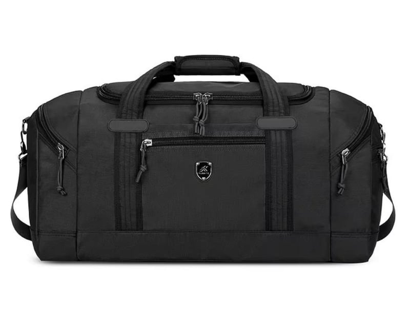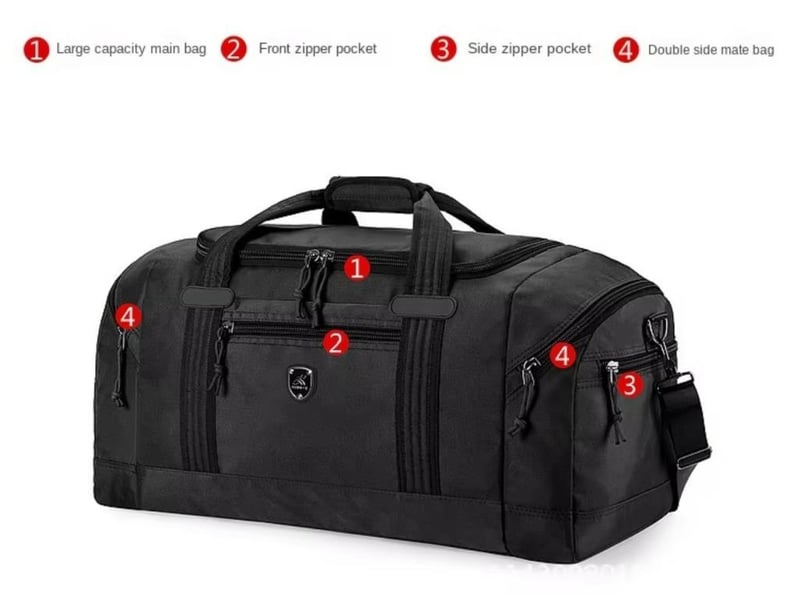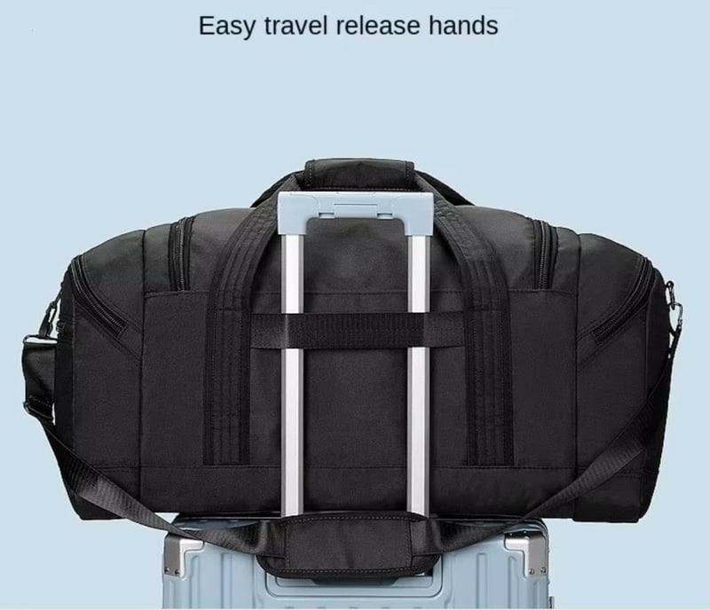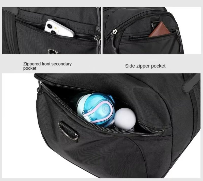 Duffel Bag 45cm x 21cm x 25cm Waterproof Breathable Fashion Luggage Shoulder Messenger Handbag for Outdoor Travel Sport Storage Multiple Zipper Side Pockets Dual Zipper Top Flap Shoulder Strap(Sometimes in the creation of images and videos there may be very small differences in the product itself or size comparison, so these images are used only for the visual effect of the product shown, however the exact product with its specifications and size is always shown in the later/earlier photos so please be aware of this.) (BRAND NEW IN BAG) BLACK COLOUR