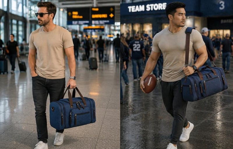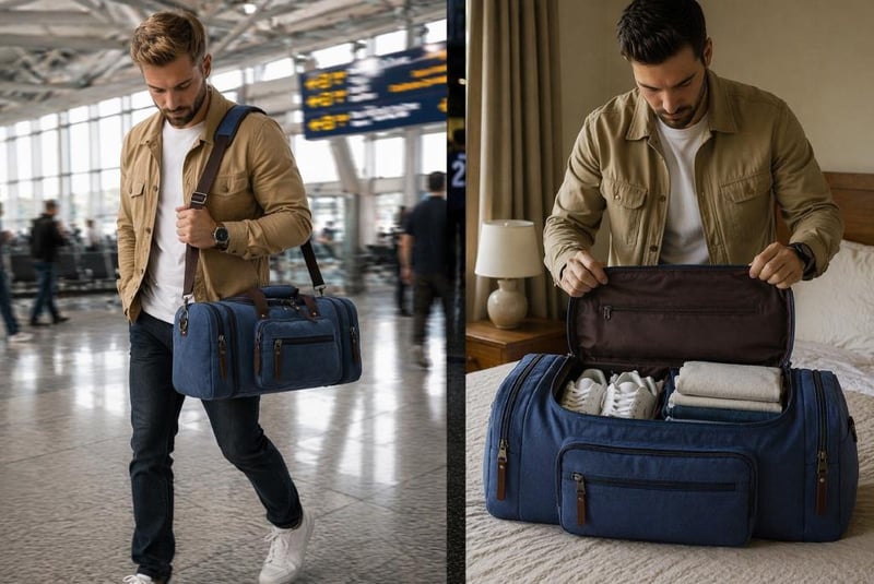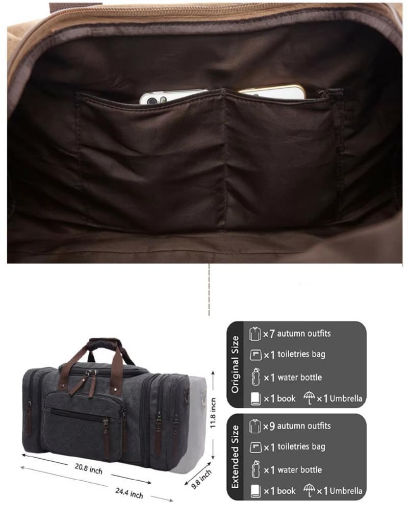 Duffel Bag 55cm x 30cm x 25cm (2.8 INCH EXTENDABLE SIDE ZIPPERS) Water Resistant Lightweight Carry-on Weekender Travel Gym Overnight Tote Bag Shoulder strap Strong Canvas/polyester-cotton lining Multiple inside Pockets Double Zipper Top Flap. (Sometimes in the creation of images and videos there may be very small differences in the product itself or size comparison, so these images are used only for the visual effect of the product shown, however the exact product with its specifications and size is always shown in the later/earlier photos so please be aware of this.) (BRAND NEW IN PLASTIC) BLUE COLOUR