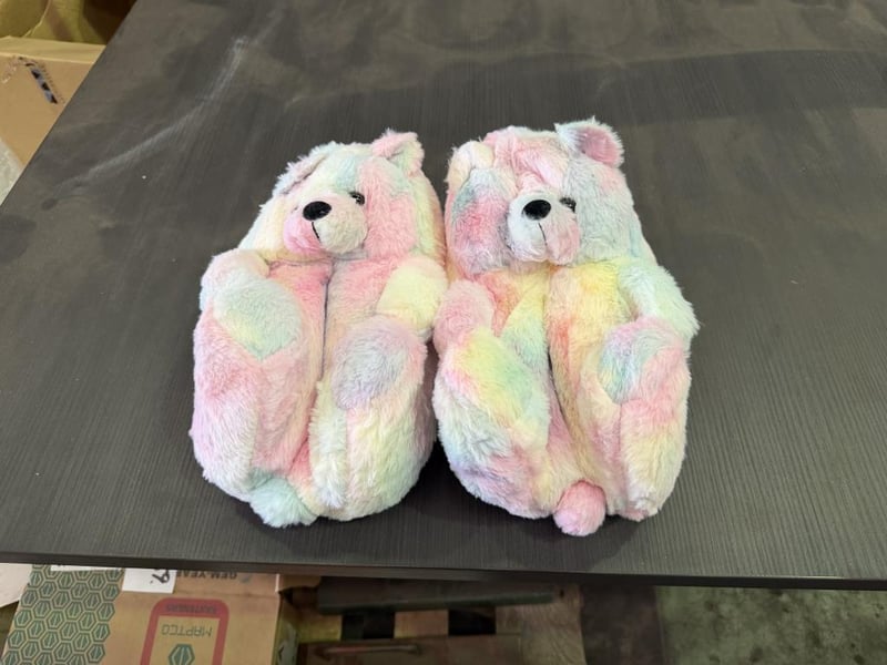 Adult Plush Animal Slippers, Pastel Rainbow