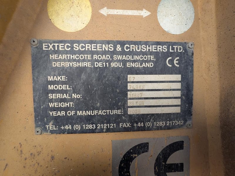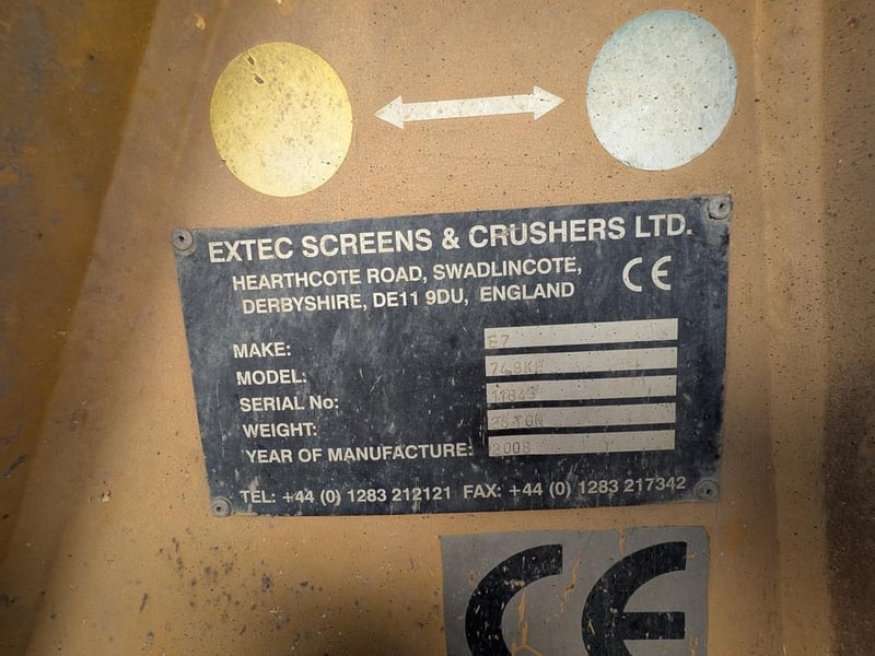 2008 Extec Screens & Crushers Ltd E7 ScreenerYear: 2008Make: Extec Screens & Crushers LtdModel: E7 (749KW)Machine Type: Mobile ScreenerWeight: 28 TonnesDescription: Tracked Mobile Screening Plant, Heavy Duty Construction, Suitable for Quarry & Recycling Applications, Multiple Conveyor System, Screening Box, Operator Controls,Location: Onsite Yatala, QLD