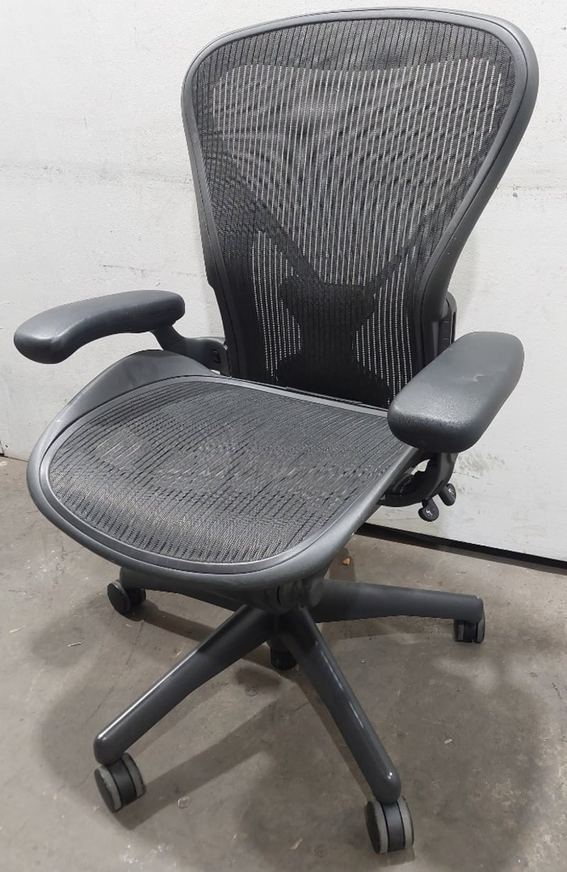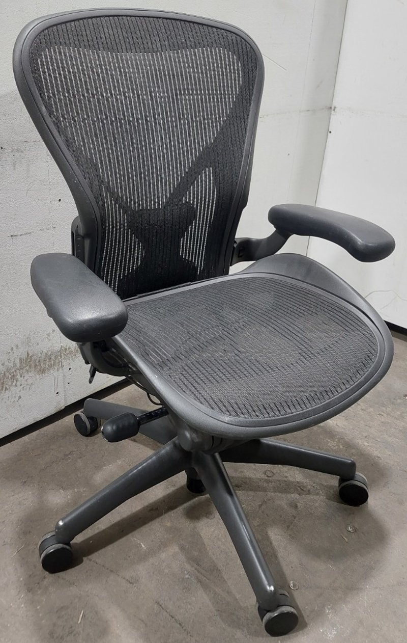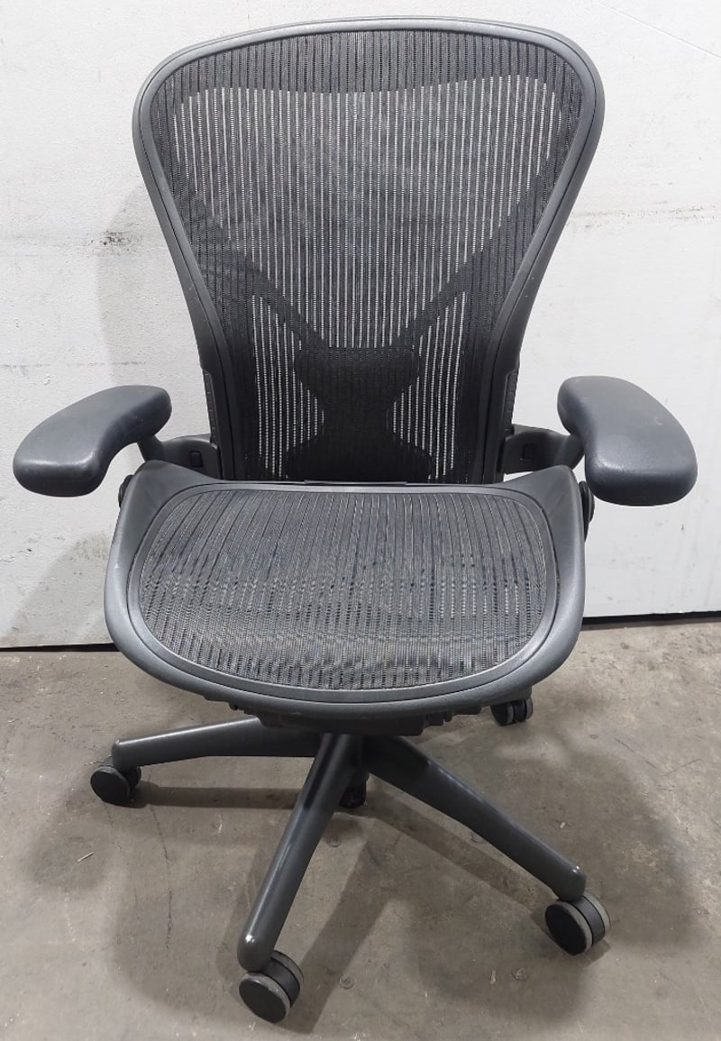 Ergonomic Office Chair - Herman Miller Aeron AE113 B size, graphite (dark grey) 8Z pellicle mesh seat and backrest, arm rests, gaslift, mobile, DOM: 2012