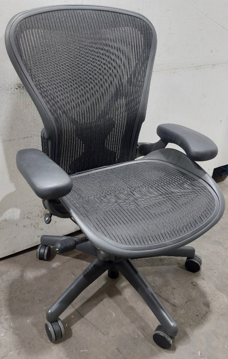 Ergonomic Office Chair - Herman Miller Aeron AE113 B size, graphite (dark grey) 8Z pellicle mesh seat and backrest, arm rests, gaslift, mobile, DOM: 2012