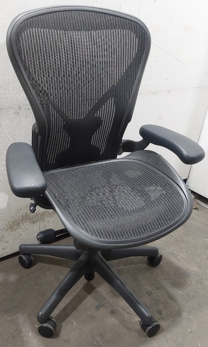 Ergonomic Office Chair - Herman Miller Aeron AE113 B size, graphite (dark grey) 8Z pellicle mesh seat and backrest, arm rests, gaslift, mobile, DOM: 2012
