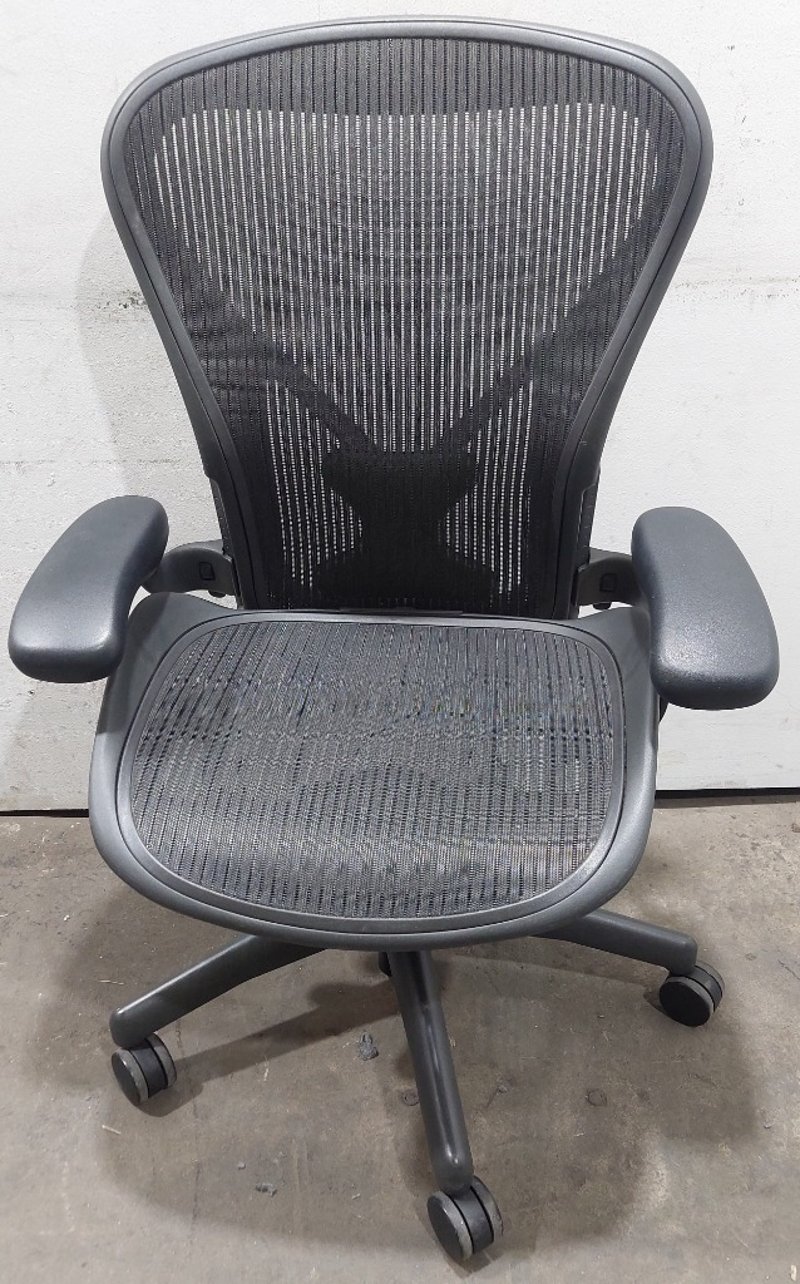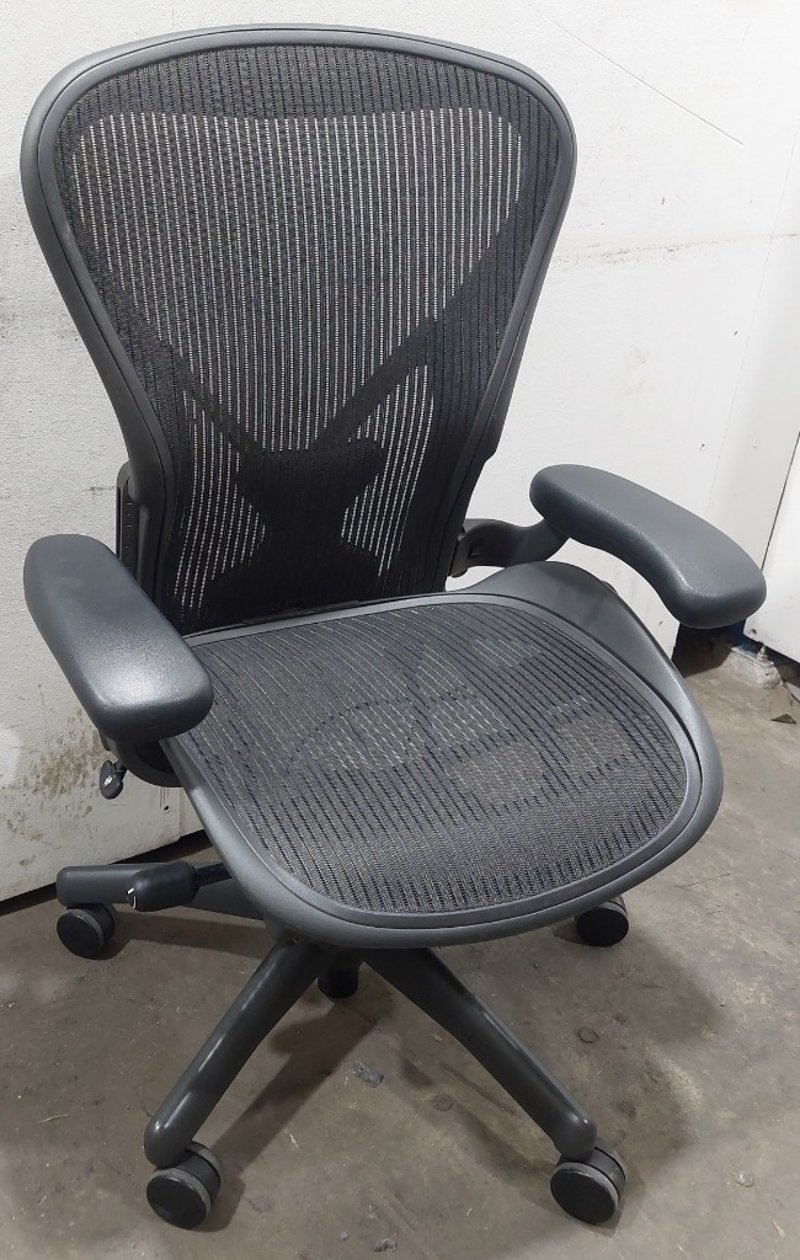 Ergonomic Office Chair - Herman Miller Aeron AE113 B size, graphite (dark grey) 8Z pellicle mesh seat and backrest, arm rests, gaslift, mobile, DOM: 2012