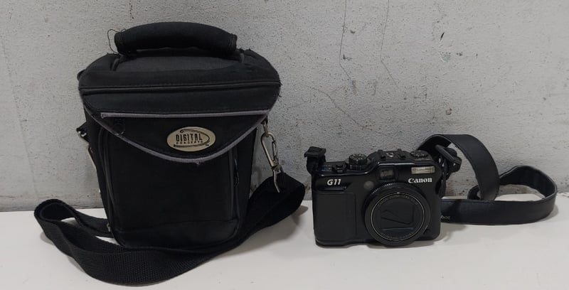 Compact Digital Camera - Canon PowerShot G11 model PC1428, 5x optical zoom lens, 10mp, 2.8" vari-angle screen, S/N: 0875500401 in soft pouch