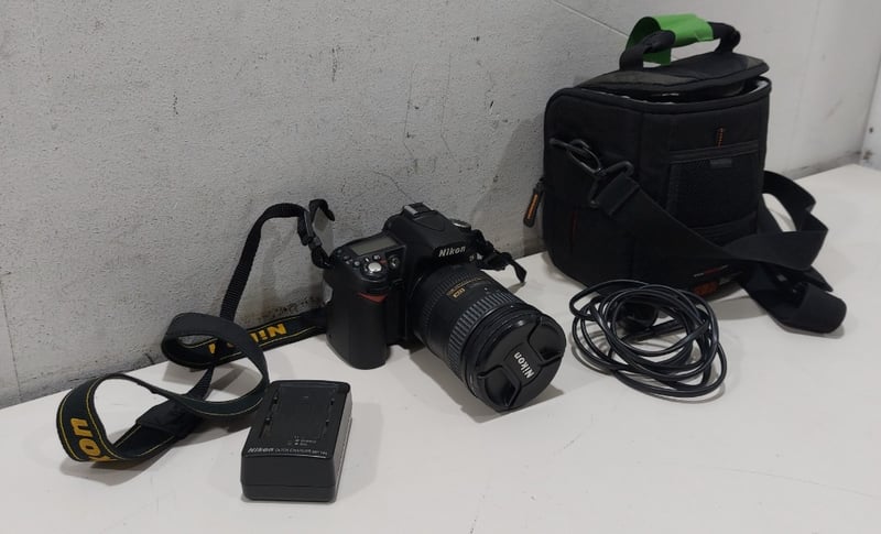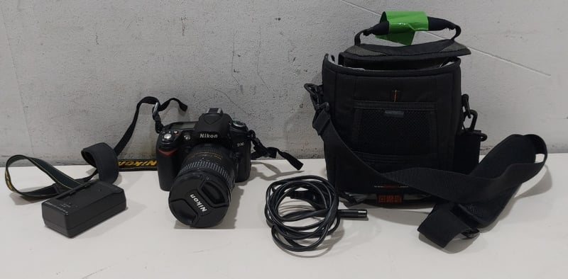 Digital SLR Camera - Nikon D90, 12.3-megpixel, DX-format, 3" LCD display, S/N: 8249473 with Nikon AF-S DX Nikkor 18-200mm f/3.5-5.6G ED VR II zoom lens, S/N: 42211627 in soft carry case with Nikon Quick Charger MH-18a battery charger, S/N: 0506040321, Nikon 1500mAh Li-ion battery and Inca 1300mAh Li-ion batteryNote: item os untested, signs of wear.