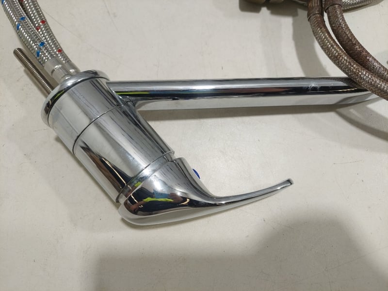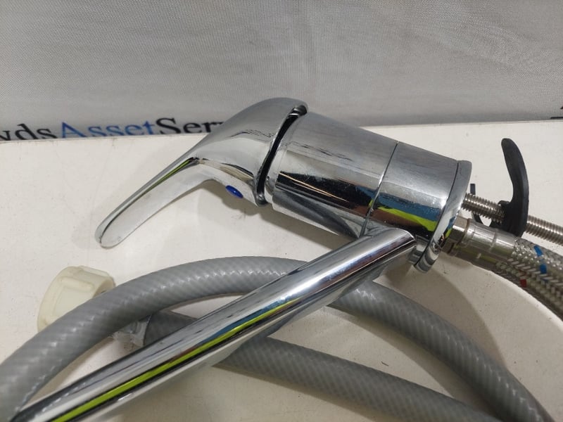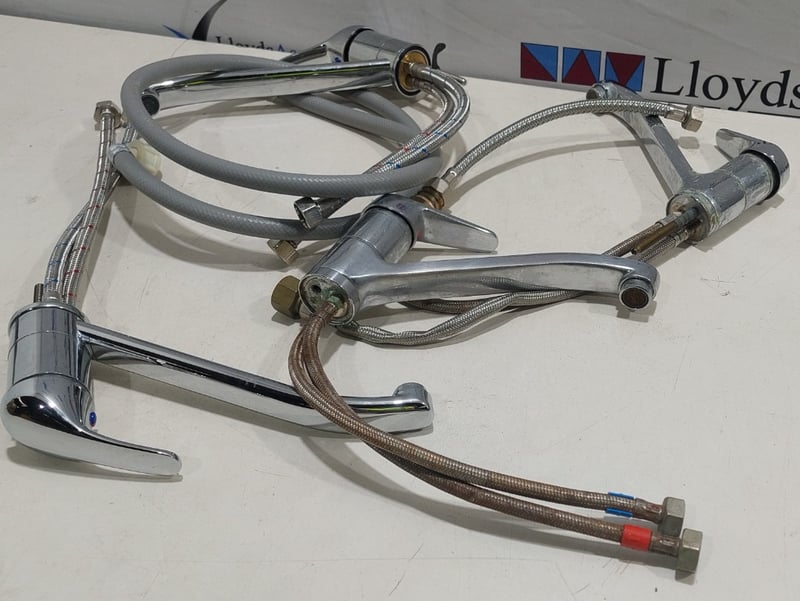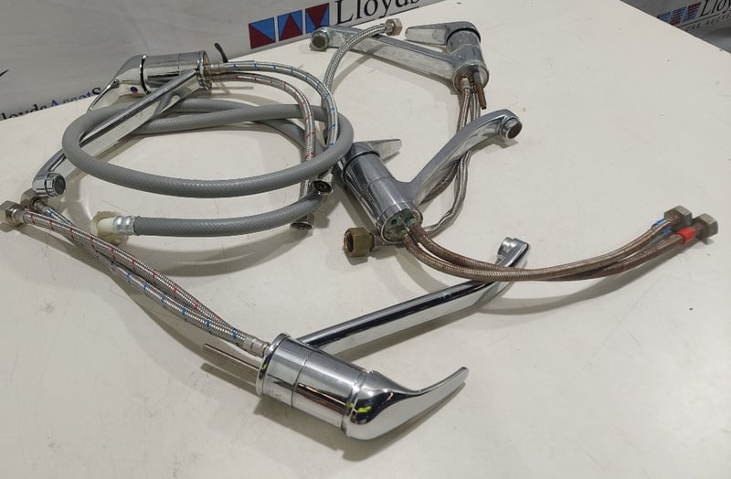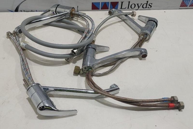 Chrome kitchen sink mixers.