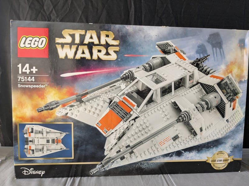 Lego Star Wars Ultimate Collector Series Snowspeeder (Set 75144) Featuring Detailed White And Orange Construction With Articulated Wings, Dual Laser Cannons, Opening Cockpit, And Removable Engine Panels. Includes Minifigures And Comprehensive Instruction Manual