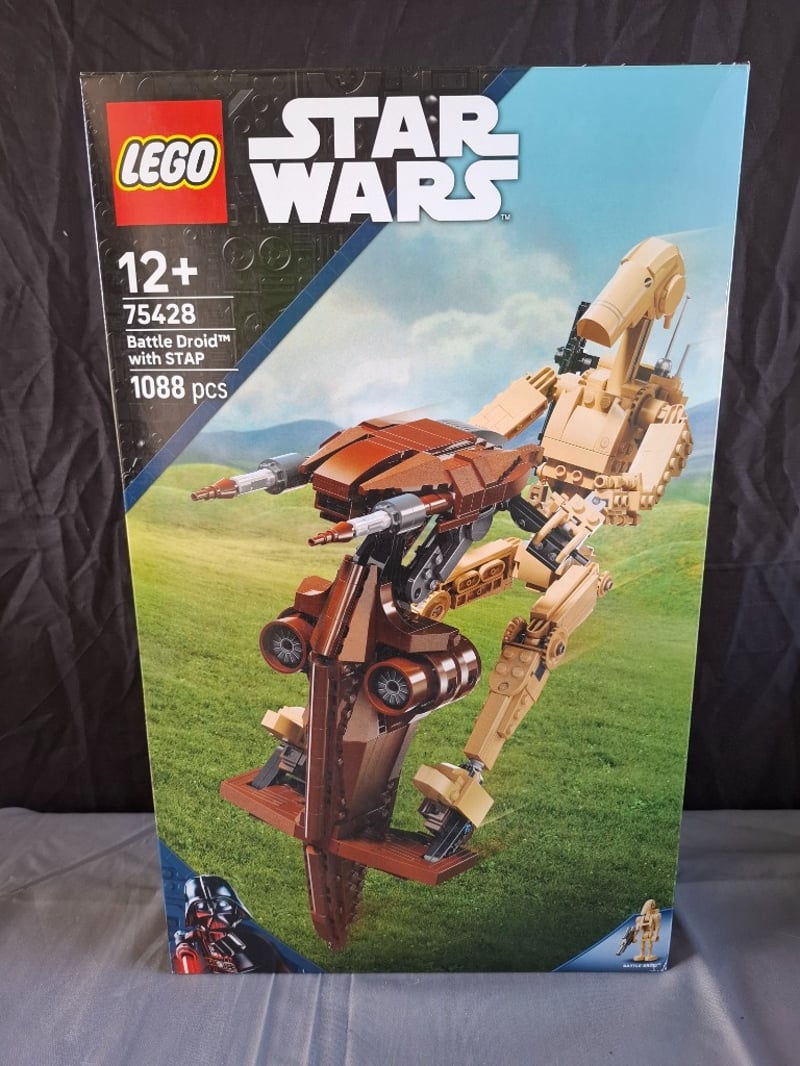 LEGO STAR WARS BATTLE DROID WITH STAP SET 75428Lego Star Wars Set 75428 Featuring A Battle Droid With Stap (Single Troop Aerial Platform). This 1088-Piece Construction Set Includes A Poseable Tan And Brown Battle Droid Figure With Articulated Limbs And A Detailed Stap Vehicle With Opening Cockpit And Firing Missiles. The Set Includes A Display Stand And Instruction ManualCondition: Good - Refer To Images584570+288