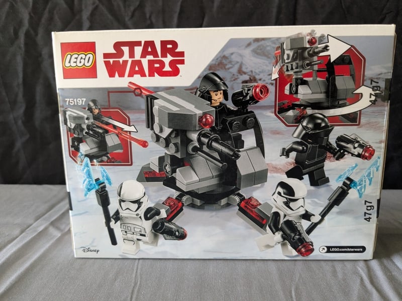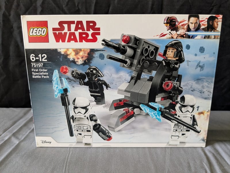 LEGO STAR WARS SET 75197 FEATURING FIRST ORDER SPECIALISTS BATTLE PACK WITH MINIFIGURES INCLUDING FIRST ORDER OFFICER, FIRST ORDER STORMTROOPERS, AND KYLO REN CHARACTER.Set Includes Buildable Weapon Turret With Rotating Cannon, Detachable Blaster Elements, And Blue Energy Effect Pieces. Recommended Age 6-12 Years. Complete With Original Retail Packaging Displaying Product Imagery And Specifications.Condition: Good - Refer To Images584570+312