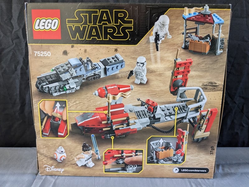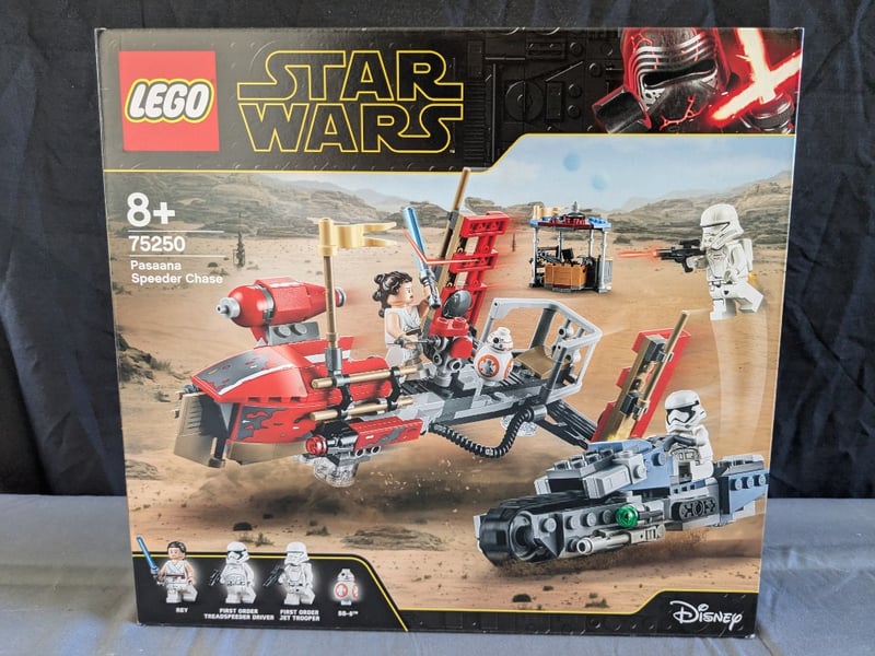 LEGO STAR WARS FEATURING THE PASAANA SPEEDER CHASE SCENE FROM THE RISE OF SKYWALKER. SET 75250Includes Red Speeder With Rotating Cannon, First Order Transport Vehicle With Treaded Base, Market Stall Structure With CanopyCondition: Good - Refer To Images584570+334