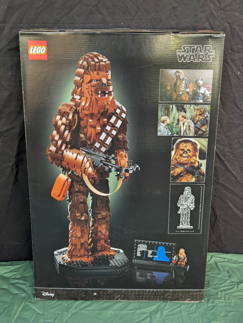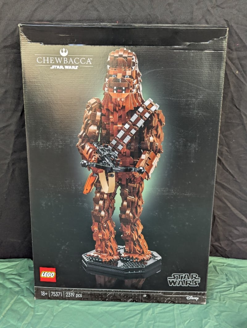 LEGO STAR WARS CHEWBACCA COLLECTIBLE FIGURE SET 75371Item Size: Height: 81cm, Width: 28cm, Depth: 28cmLego Star Wars Chewbacca (Set 75371) - Premium Collectible Buildable Figure Featuring 2,319 Pieces. Highly Detailed Construction Depicting The Iconic Wookiee Character With Signature Brown And Cream Coloring, Articulated Limbs, And Accessories Including Bowcaster And Bandolier. Includes Minifigure Representation And Display Base. Age 18+. Sealed Original Packaging With Minor Wear To Box Exterior.Condition: Good - Refer To Images584570+358